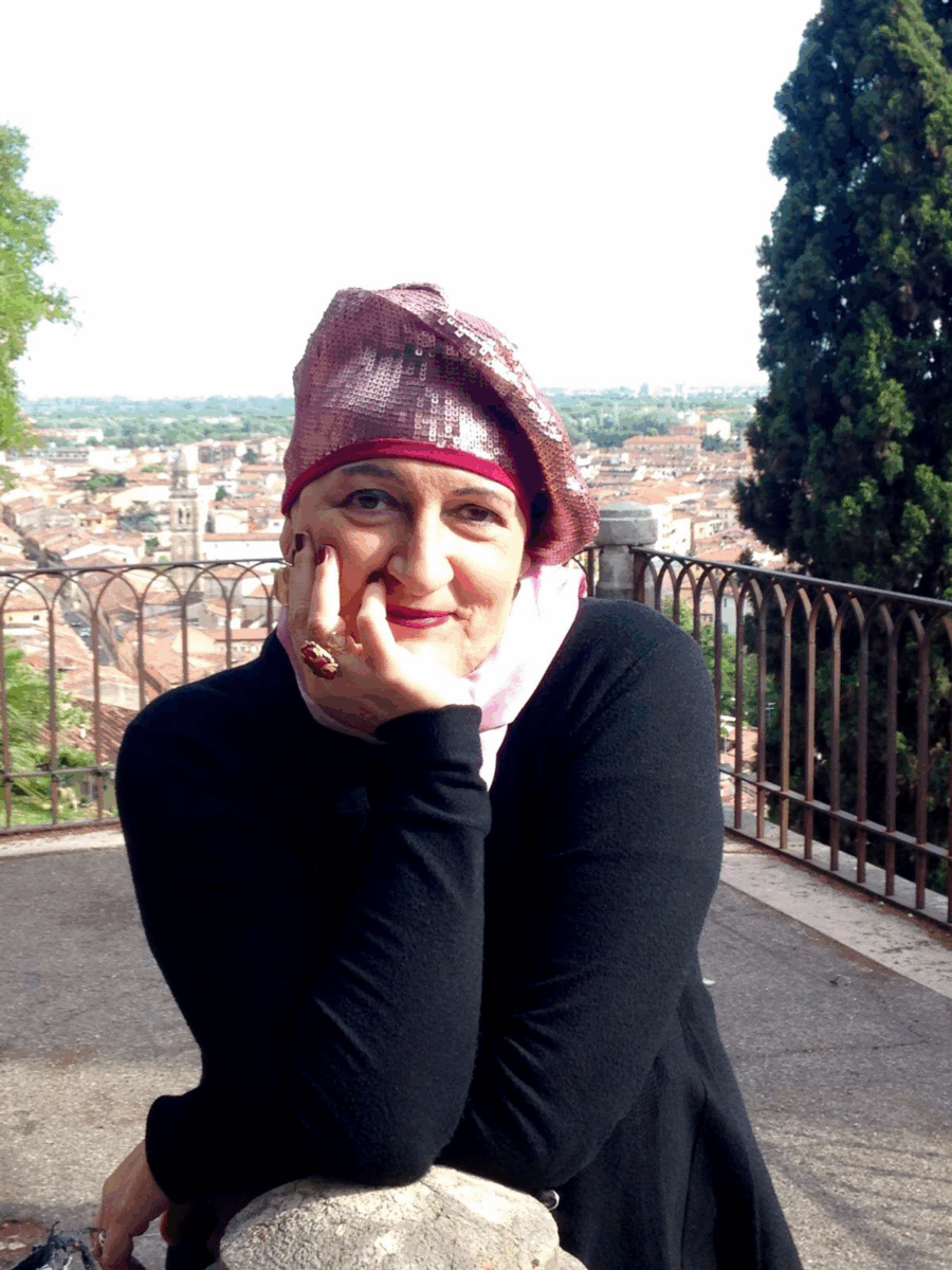 Sono sempre stata un po’ veggente con la mia vita, di avventure ne ho vissute tante, belle e brutte, ma quella che sto vivendo ora merita un capitolo a parte. Un caldo giorno di giugno ha bussato alla mia porta un ospite inatteso: il cancro. Da allora il mio quotidiano ha assunto nuove tonalità. Nessuna guerra, ma al contrario più vita: tenacia e sorriso, anche “da vendere”. Ecco perché continuo a scrivere, ad ammirare la natura e l’arte, a onorare la vita vivendola a tutto tondo. A divertirmi con il mio look perché i miei occhi hanno bisogno di sorprese. Ogni mattina apro gli occhi e so che anche quel giorno l’amore, che dò e che ricevo più cospicuo che mai, mi aiuterà a vincere”.