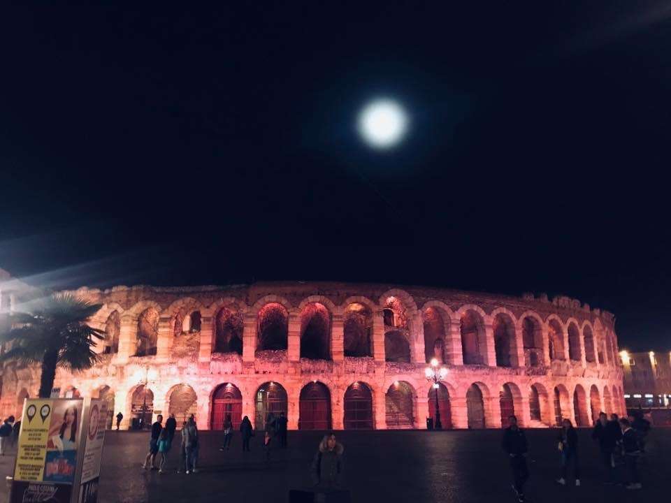 Gran finale con l’Arena che si illumina di rosa. Patrocini di Regione del Veneto, Provincia di Verona, Università degli Studi di Verona, AOUI, AULSS 9 Scaligera.